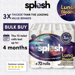 Welcome to Splesh. We have beautifully scented toilet tissues from Original White to beautiful Lavender, all of which are made from Fully Sustainable materials and delivered direct to your door and we even offer “Subscribe & Save” for a totally hassle free solution. Totally biodegradable & 100% recyclable and fully backed up by our 100% money back, satisfaction guarantee. Also proudly made in the UK