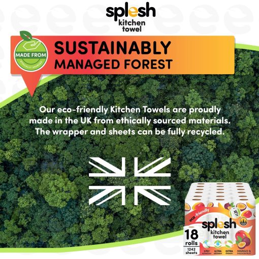 Splesh Culina XL 3-ply kitchen towels are eco-friendly and sustainable household supplies made in the United Kingdom from ethically sourced. This kitchen towel is made of 3-ply paper that is extra soft, strong, and Mango & Passionfruit scented?ultra-absorbent. It can soak up spills, wipe away grease, and clean any surface with ease.