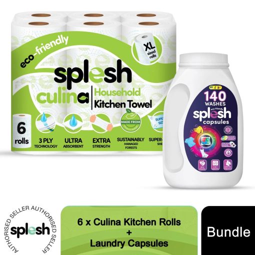 Splesh Culina XL Kitchen Towel 3 Ply 6 Rolls with 3in1 Laundry Capsules 140W