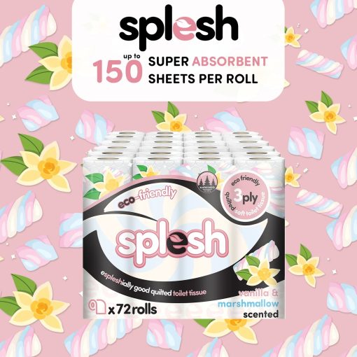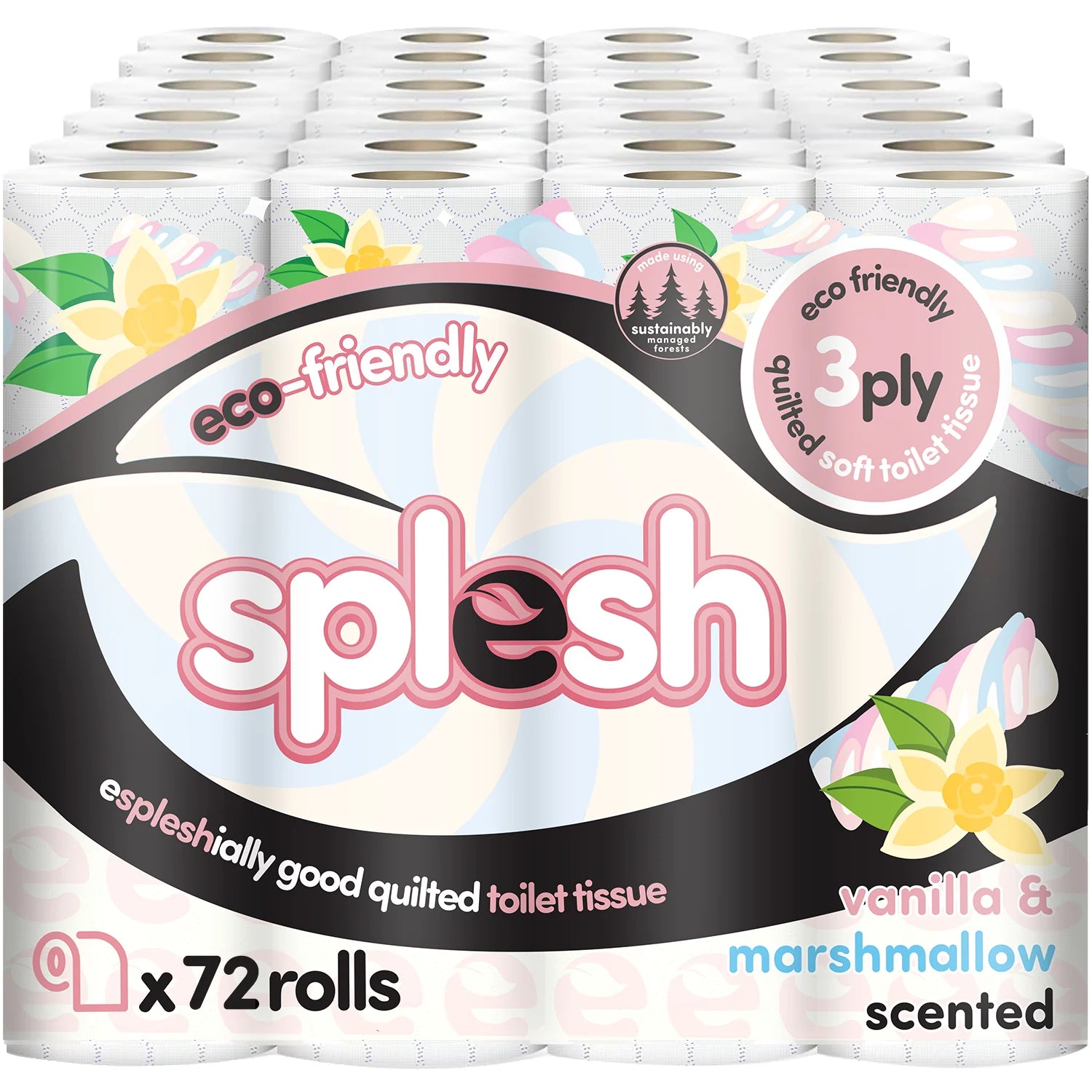 Splesh Quilted Toilet Roll Luxury Vanilla & Marshmallow 3-Ply Soft Toilet Paper, 72 Rolls